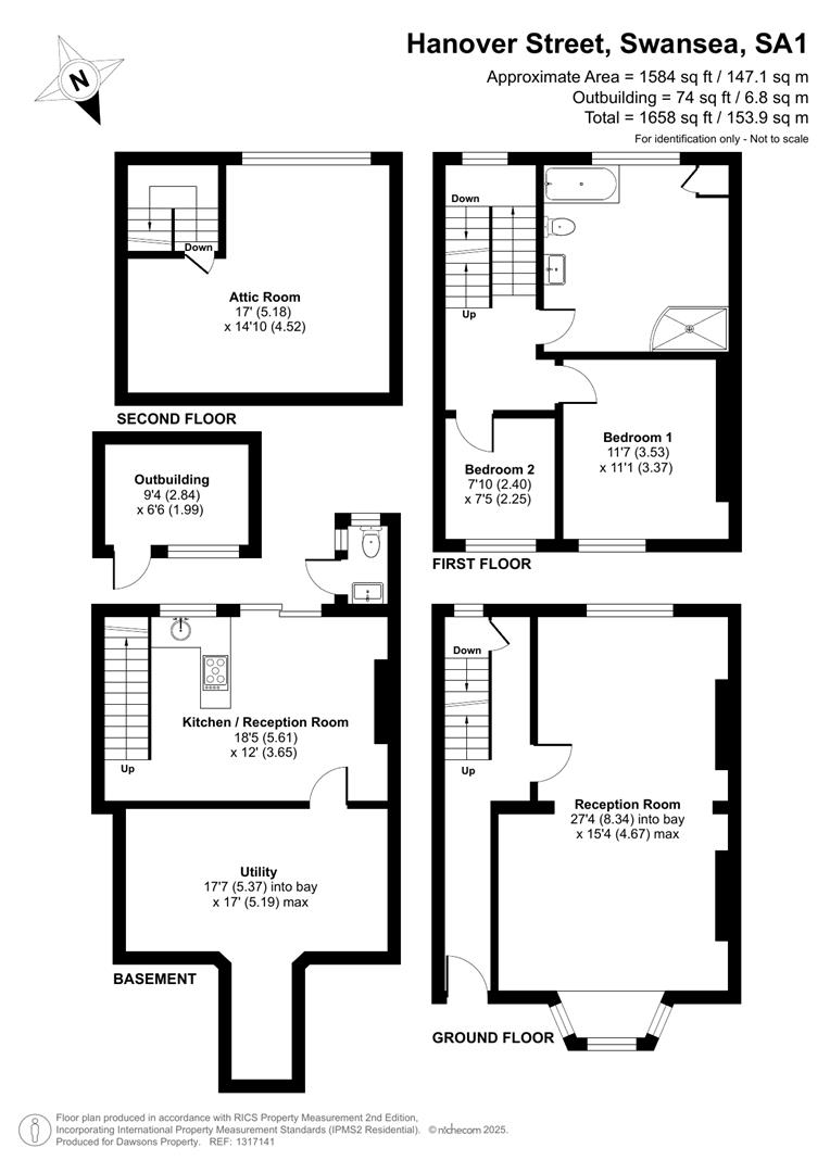 Set over four levels, the home offers flexible living space. The ground floor features an entrance hallway and a welcoming reception room, while the lower ground floor hosts a well-proportioned kitchen/dining room, utility area, and convenient W.C. The first floor comprises two bedrooms and a spacious bathroom with a four-piece suite. A versatile attic room occupies the second floor, ideal as a guest room, office, or additional living space.