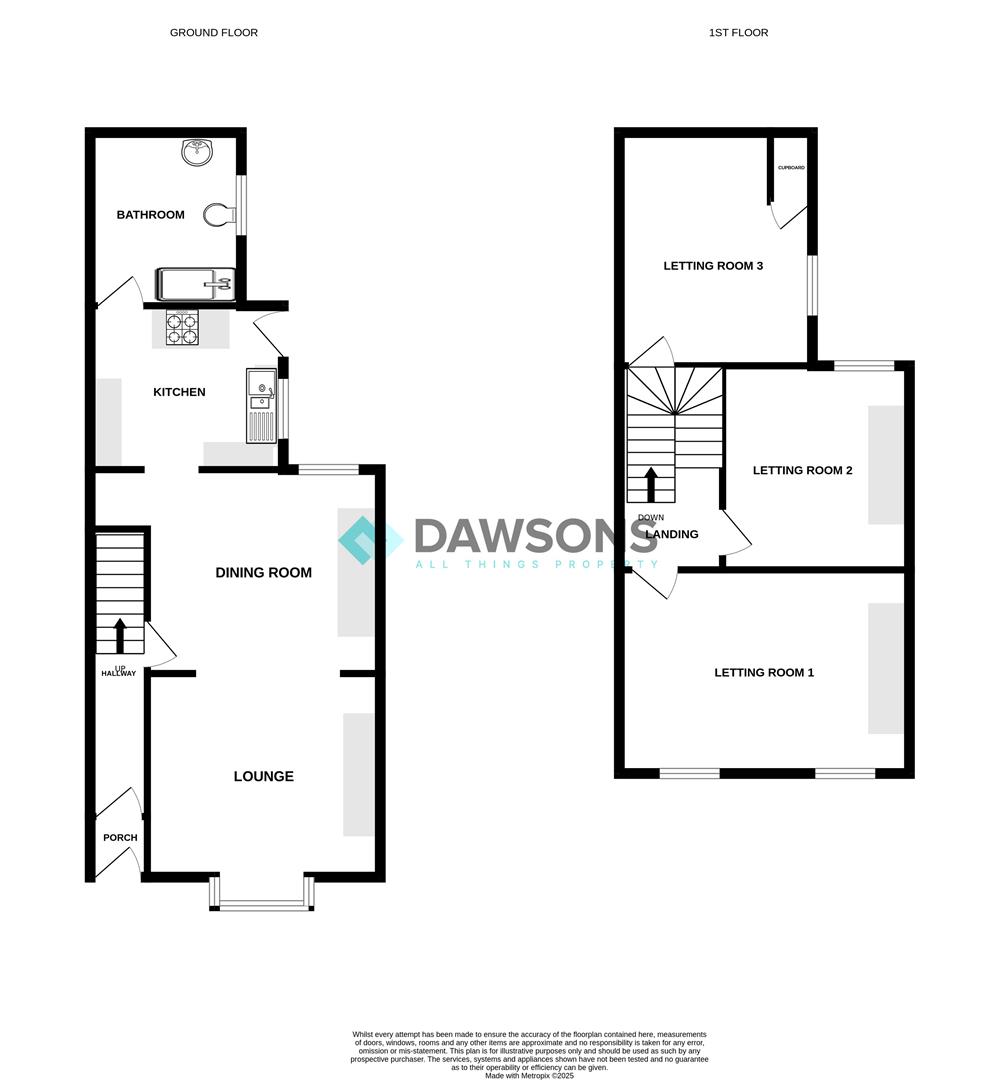 The ground floor comprises an entrance porch, hallway, communal lounge & dining room, kitchen, and bathroom. The first floor offers three letting rooms.