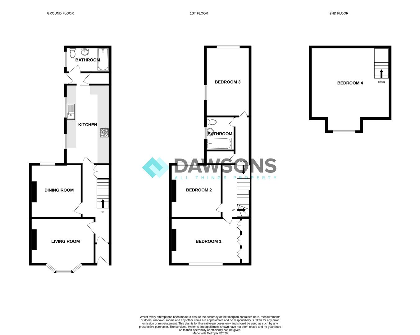 Arranged over three floors, the property comprises an entrance hallway, lounge, dining room, kitchen, inner hallway, and bathroom to the ground floor. The first floor provides three bedrooms and an additional bathroom, while the second floor features an attic room, offering useful extra space.