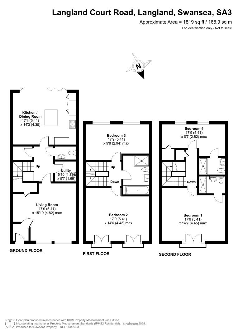 The accommodation is arranged over three floors and has been thoughtfully designed to suit modern family living. On the ground floor there is an entrance porch leading into a spacious lounge, along with a cloakroom and a utility room. To the rear, the open-plan kitchen and family room create a wonderful space for everyday living and entertaining, with direct access to the garden.