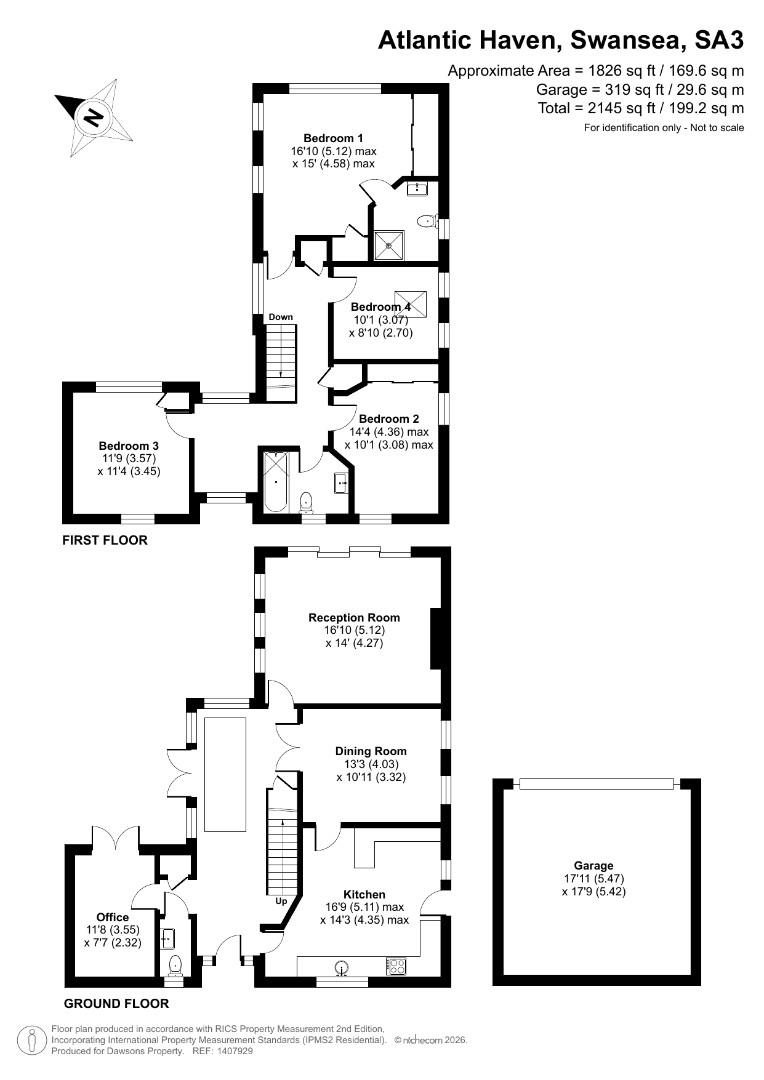 Upstairs, four well-proportioned bedrooms enjoy delightful countryside and sea views. The master benefits from stylish en-suite facilities and is complemented by a family bathroom.